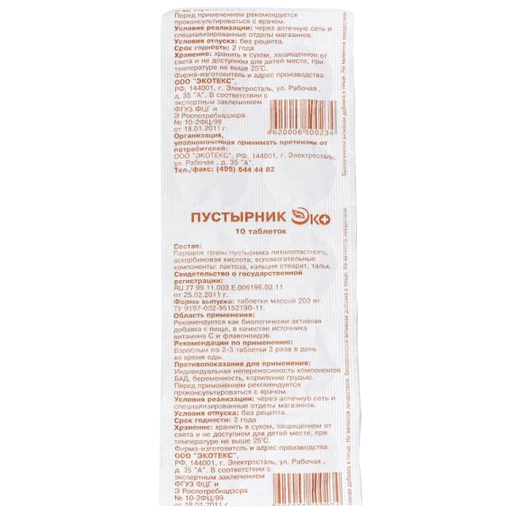 Пустырник Эко таб. N10 {Экотэкс ООО}